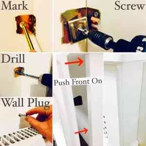 Begin drilling the holes for the wall plugs, making sure the drill holes are the correct size for the wall plugs you are using. Once the wall plugs have been inserted into the drill holes you can fix the radiator cover frame to the wall.
