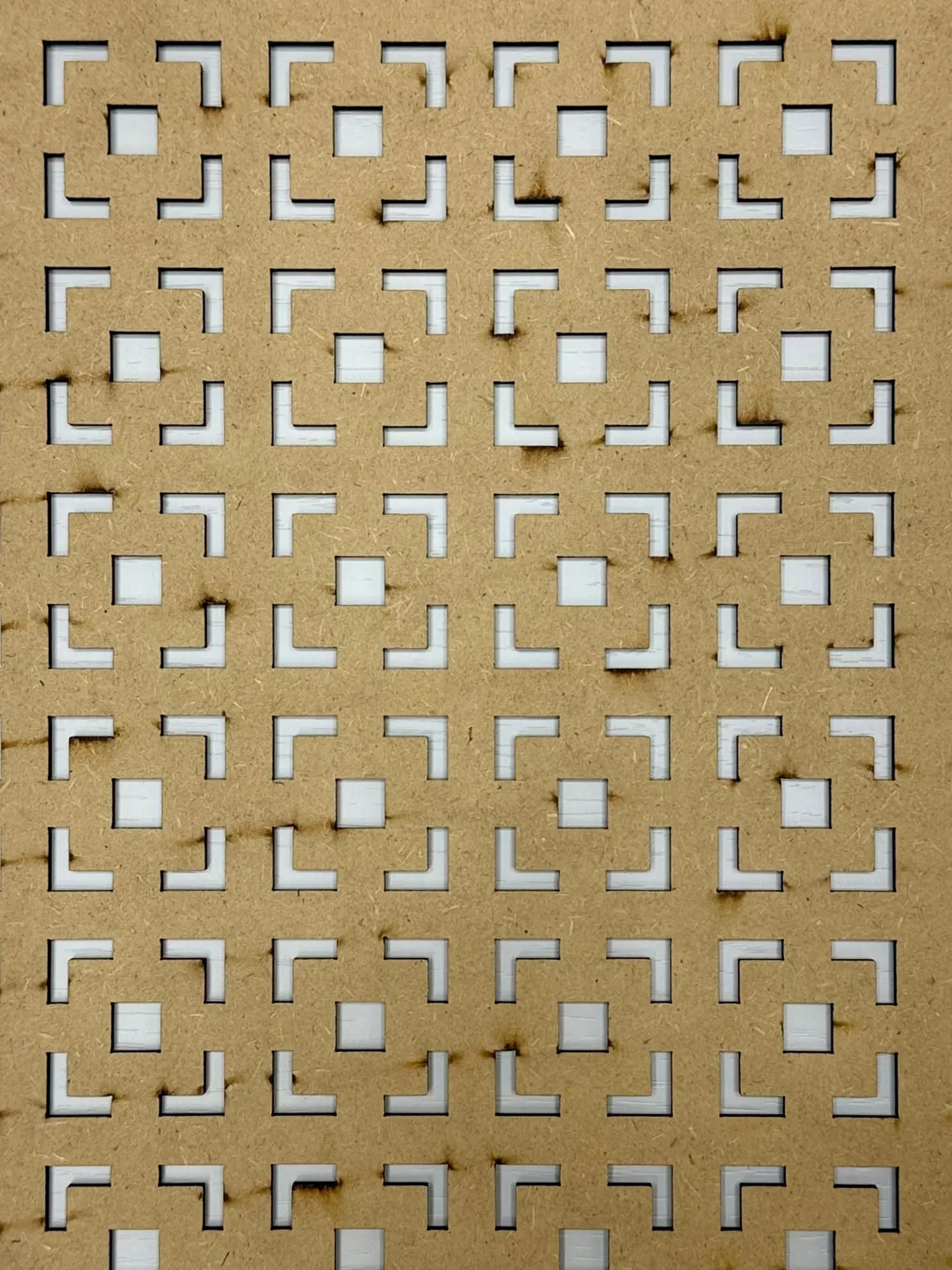Shown here in our MDF (Lasercut) material, MDF (Lasercut) is our premium grade water resistant hardboard that is durable and heat stable. Very clean / crisp pattern edges. These decorative grilles are standalone inserts designed for versatile DIY use, including custom cabinetry, wall vents, and furniture upgrades. This pattern is also available in MDF (Stamped) materials.