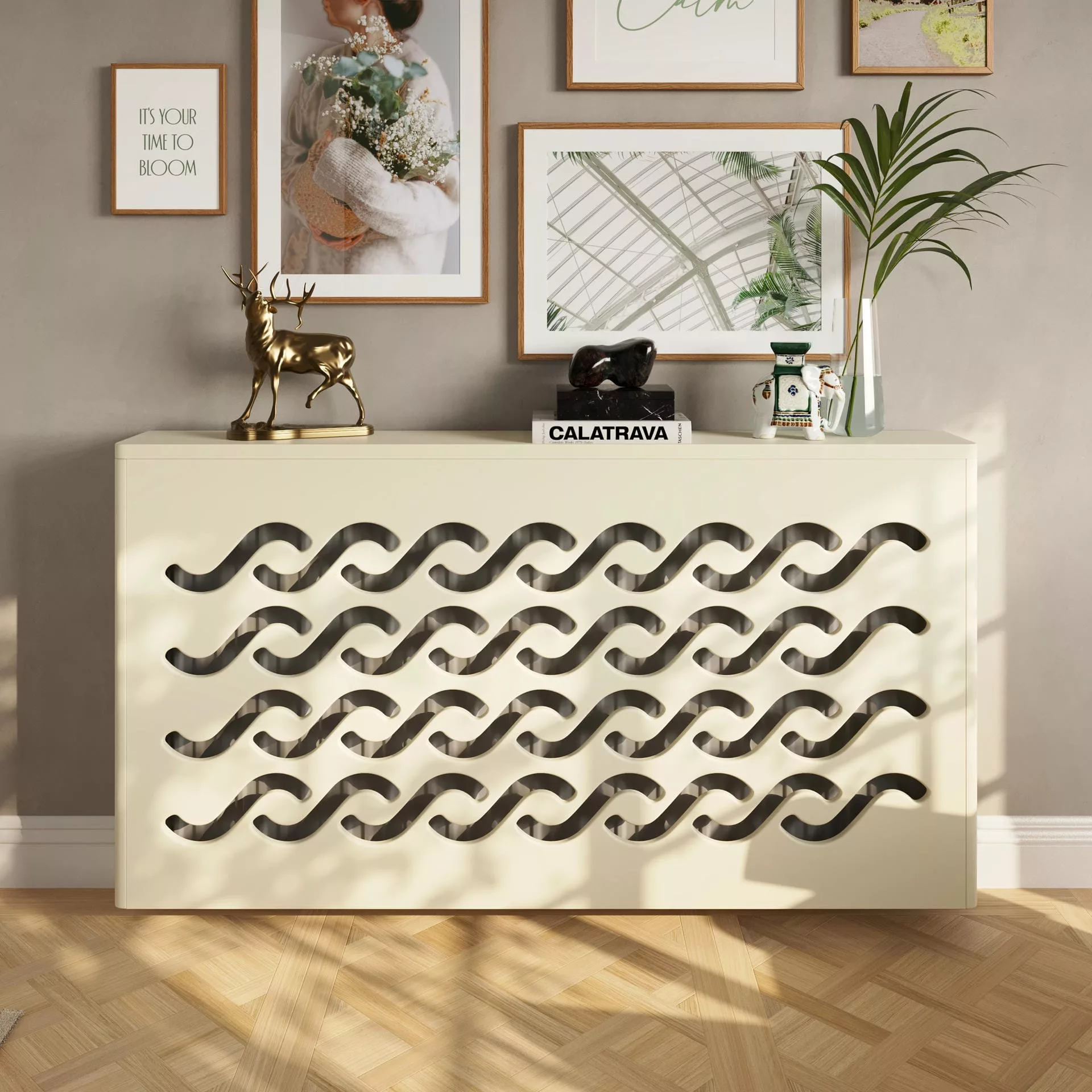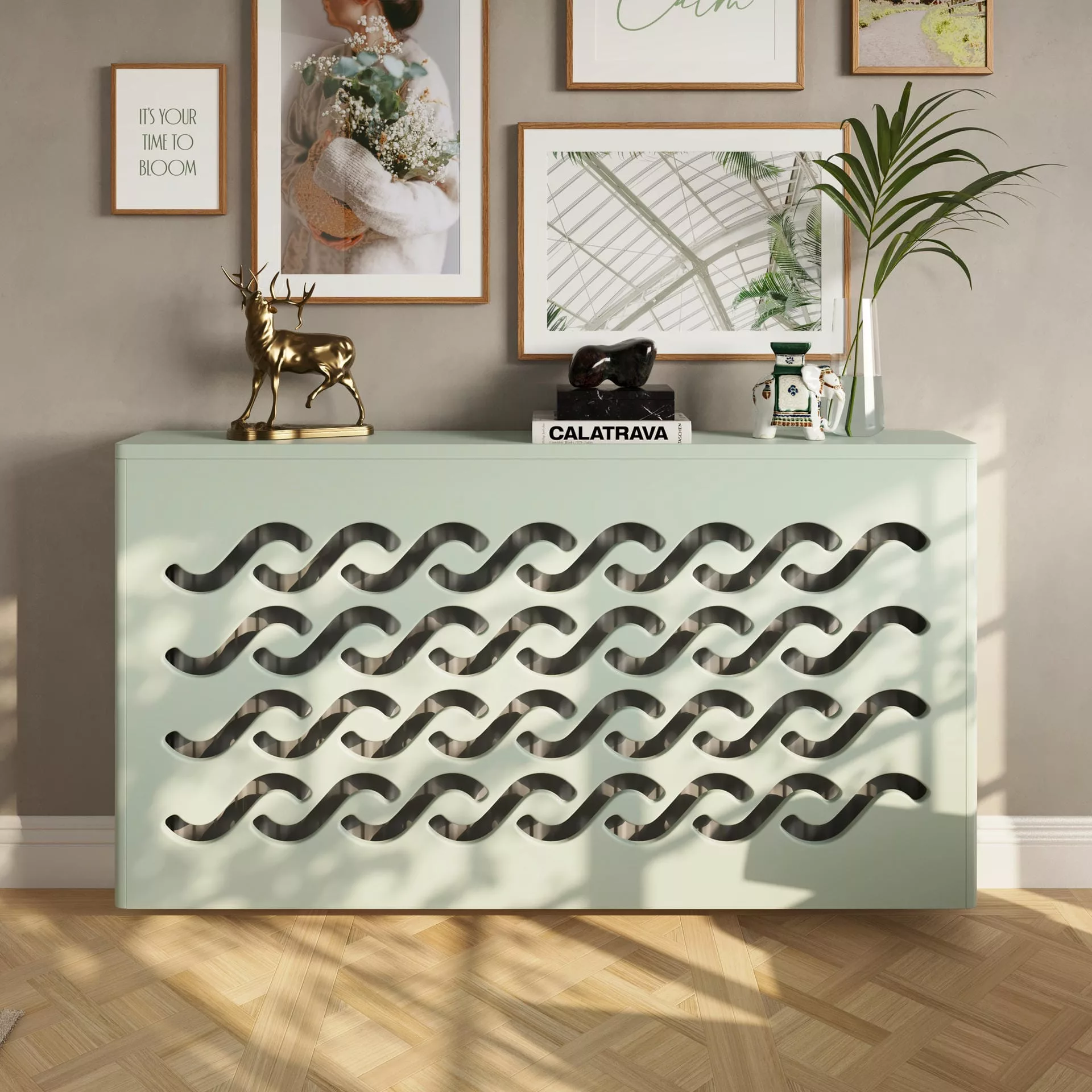 The ocean-inspired, geometric design of this radiator cover is a cost-effective way to create an attractive focal point in your home, and it can be installed in a matter of minutes.