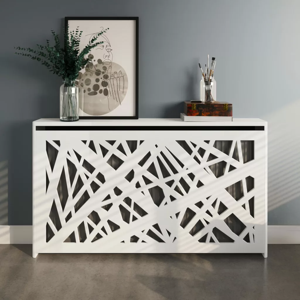 A well-chosen modern radiator cover can act as a focal point or blend seamlessly into your decor. For instance, if you prefer a minimalist aesthetic, opt for a sleek, matt-white finish that merges with your walls. Alternatively, a black radiator cover with sharp geometric patterns can add a bold, dramatic touch to your space.